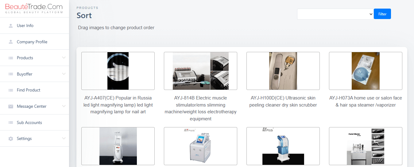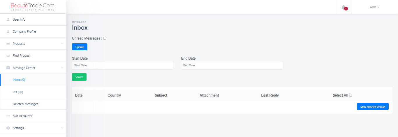 Log in to your BeauteTrade Members Area, then navigate to Message Center > Inbox to view all your messages, supplier replies, and offers.