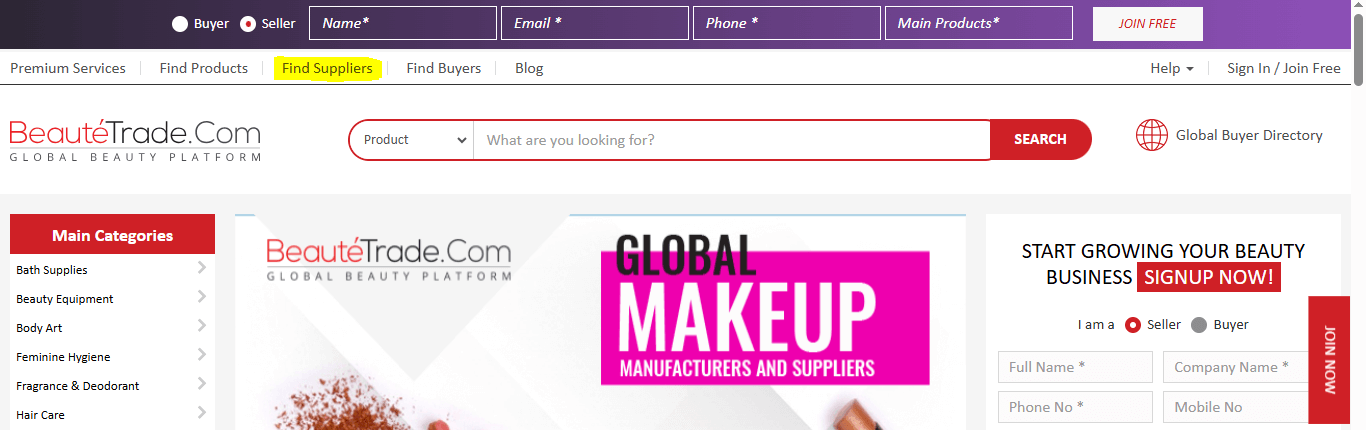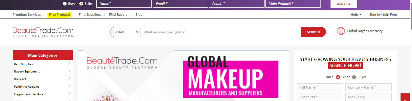 To sign up as a seller on BeauteTrade, please fill out the form on the home page.