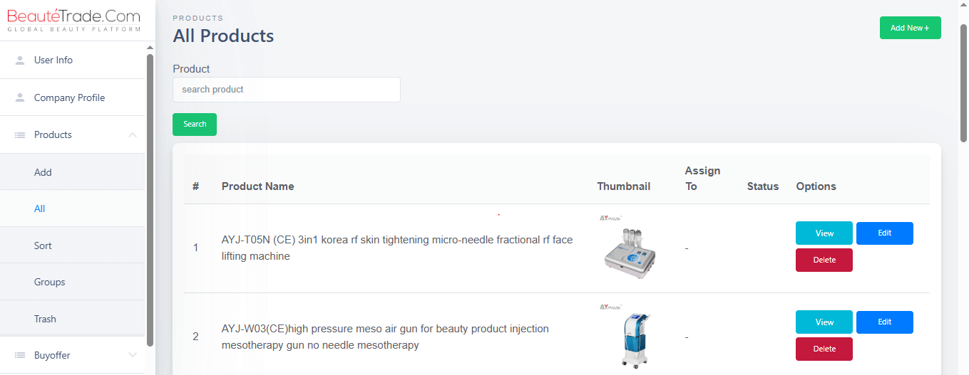 From the left menu, select the “All Products” option. From here, you will be able to view the complete list of your products, and you can edit or delete them as well.