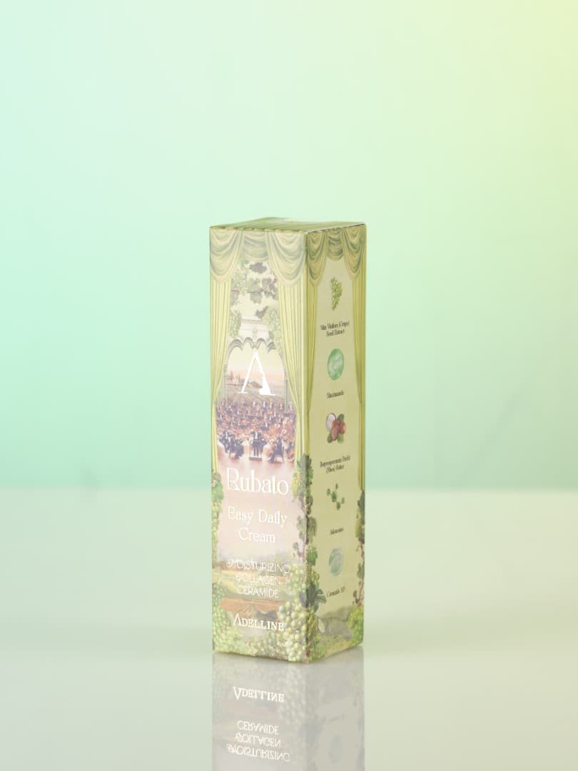 This is your daily moisture cream, which provide you both moisture retention and deep cleansing. Its name indicates the free and jazzy sprit of Adelline (Rubato) and our simple, easy approach to daily skincare.