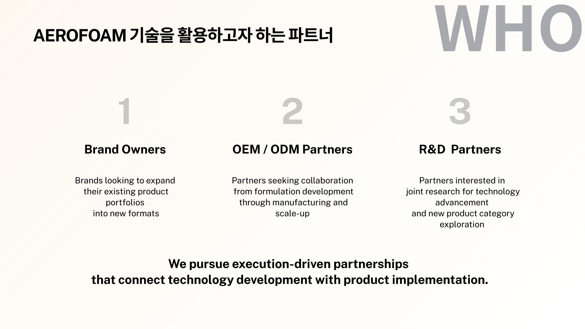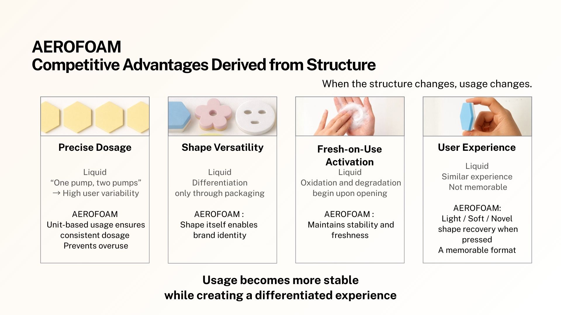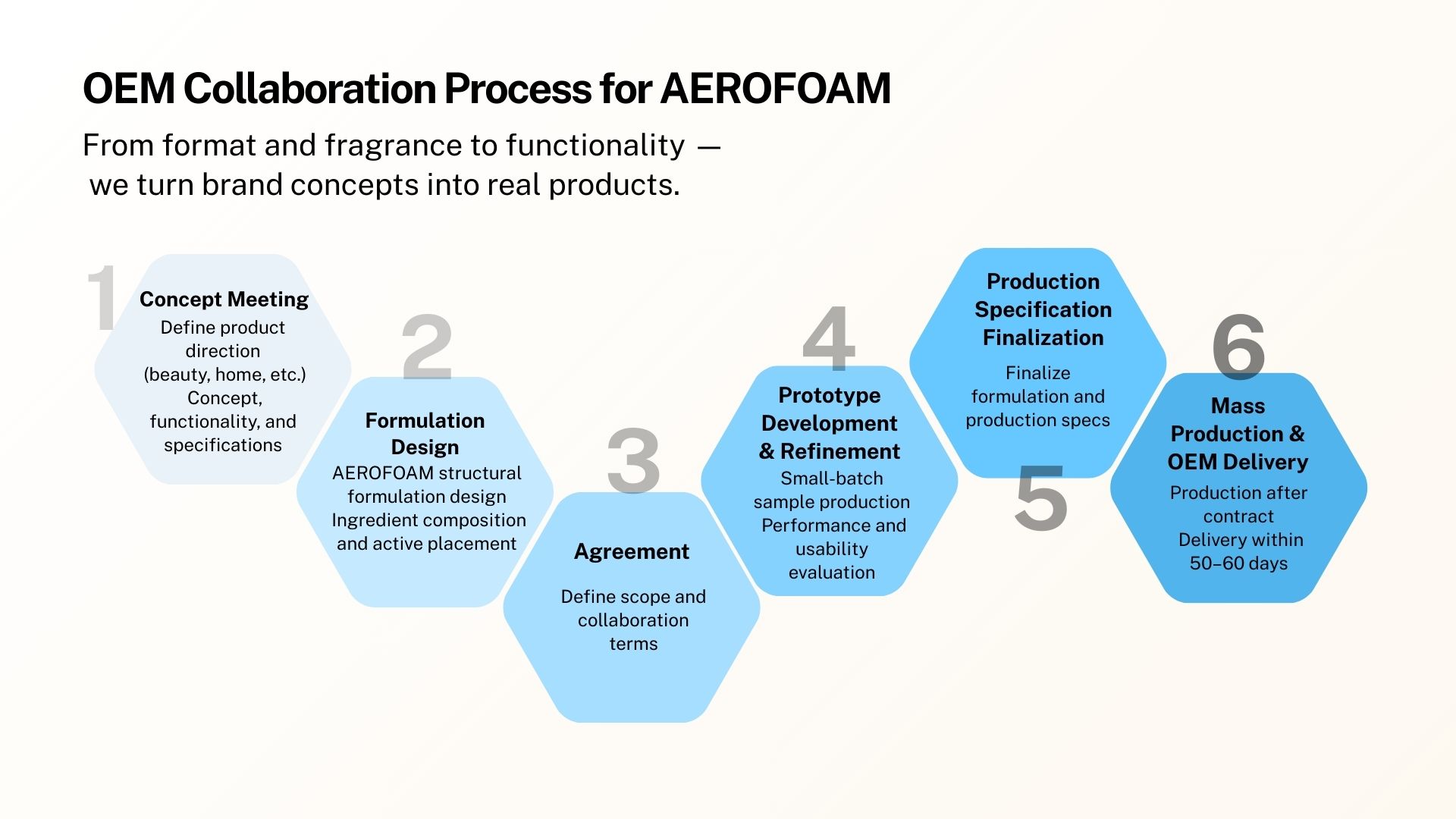 The technology also supports OEM and ODM collaboration, allowing brands to integrate their own formulation concepts into the AEROFOAM structure.