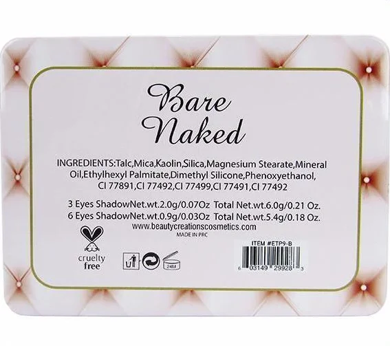 Beauty Creations Bare Naked eyeshadow Palette - Wholesale Display 12PCS