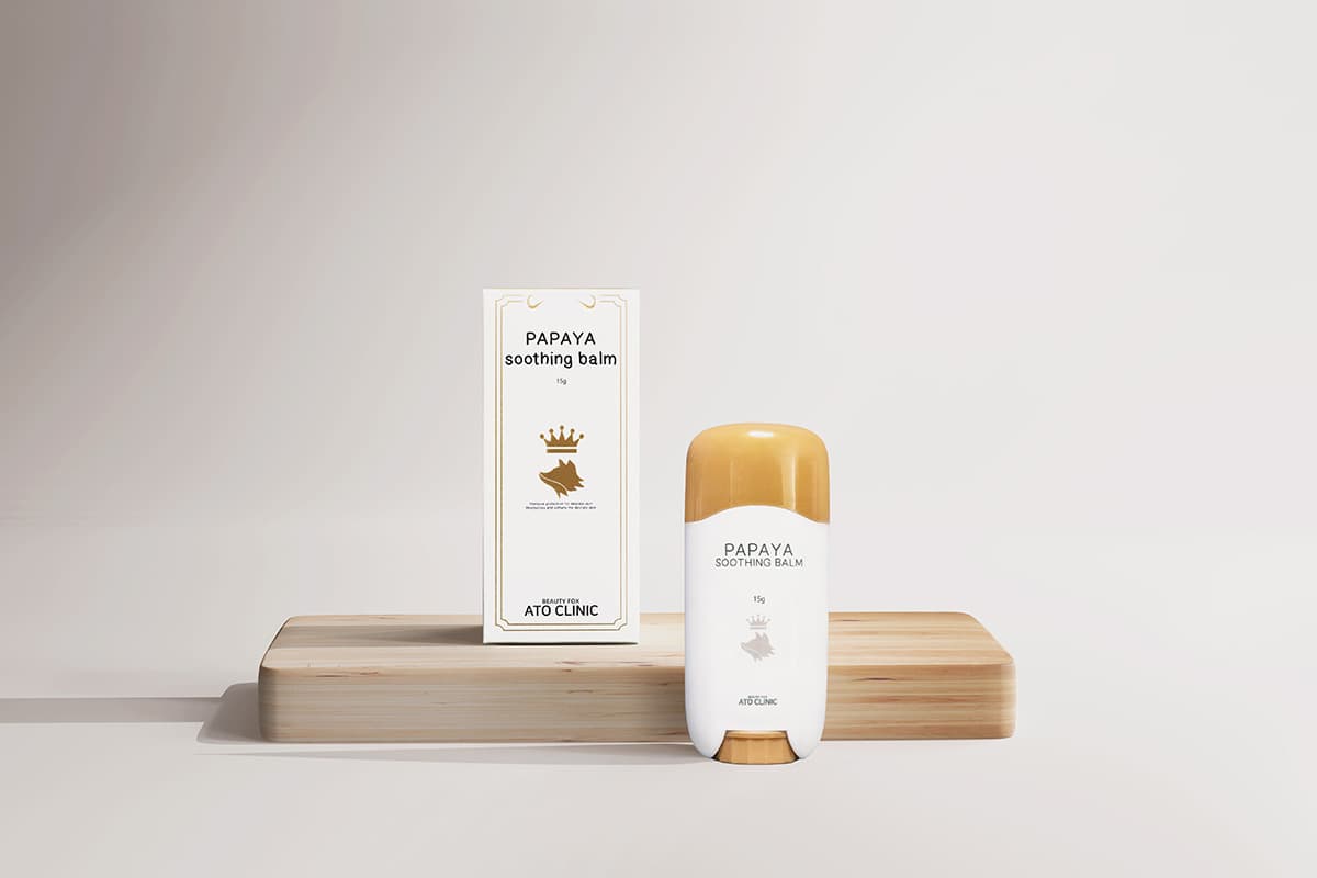 The Beauty Fox Atoclinic Papaya Soothing Balm is a solid stick that can be used without clumps, an intensive moisturizing balm for four seasons, and its portability is convenient, making it easy to use anytime, anywhere. It is a soothing multi-balm that can be used from the face to the whole body, and is especially effective for highly-humidifying cosmetics such as baby acne and hip rash that often appear around your lips. In addition, it is a good stick balm to use on cheeks that easily chap when going out, skin that turns red from the cold wind, and skin irritated by wearing a mask. The main ingredients of papaya soothing balm are as follows.