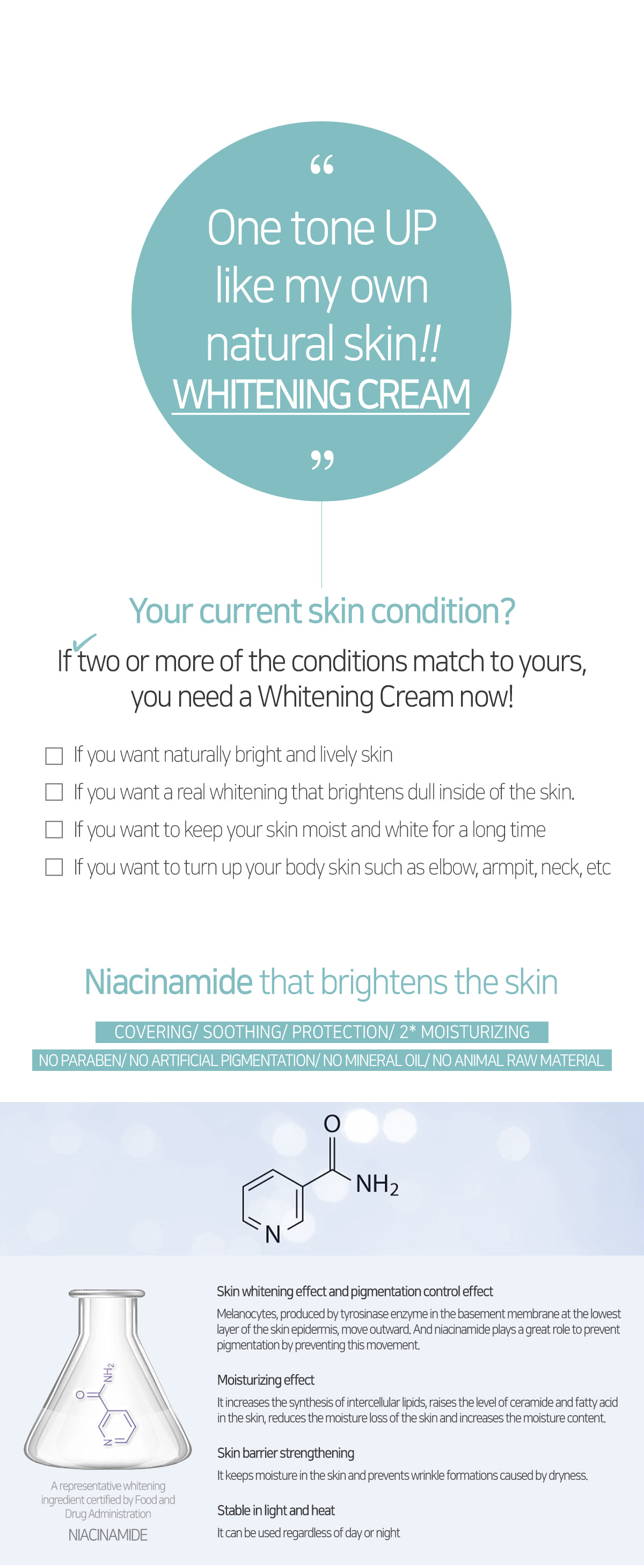 -Provides a natural whitening effect with rich moisture and thin application