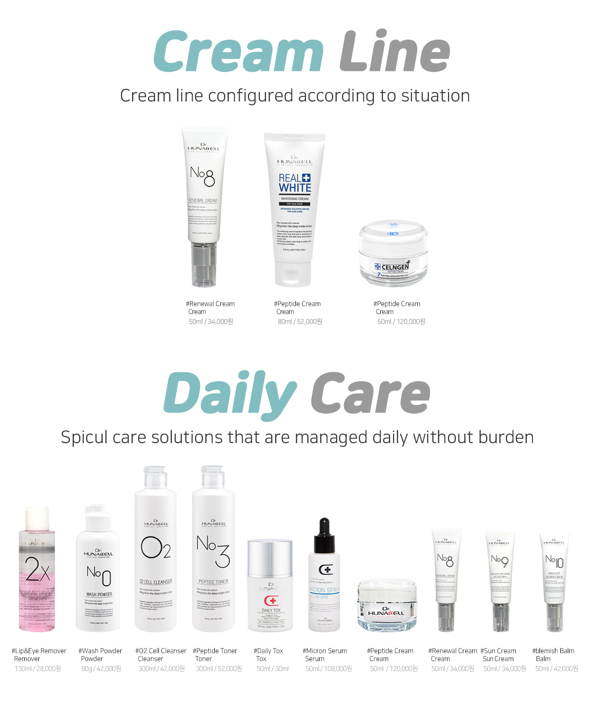 in 2016, and in order to challenge the physical cosmetic concept that goes beyond the basic cosmetics, we launched Dr. Hunacell – anti-aging cosmetics brand that adds technology to nature.