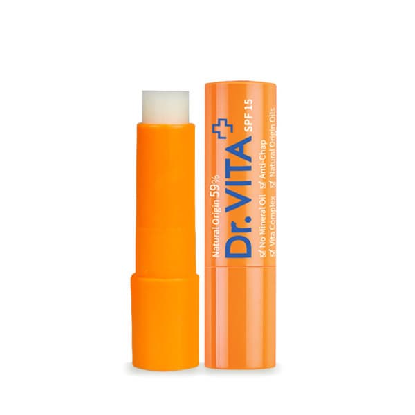 Dr.VITA Vitamin Lip Treat is a vitamin-rich lip balm in stick form designed to nourish and moisturize dry and chapped lips. It contains a blend of 10 kinds of vegetable oils such as rosehip, castor, and bergamot oils, which help to improve damaged lips by providing deep moisture and protection both inside and outside the lips. The product includes SPF 15 for sun protection and features vitamins, including Vitamin E and natural plant ingredients, known for their moisturizing, anti-irritation, soothing, and repair benefits. This lip treat helps prevent irritation, accelerates healing of micro-cracks, and tones the lips for a healthier appearance.