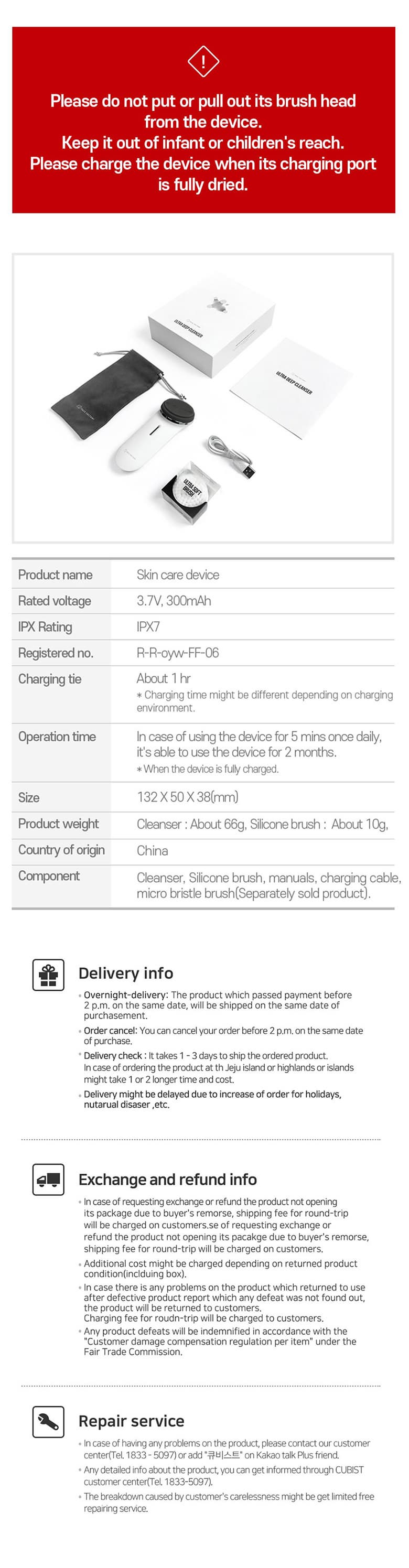 The convenient and safe use of the cleanser obtained an IPX7 rating.