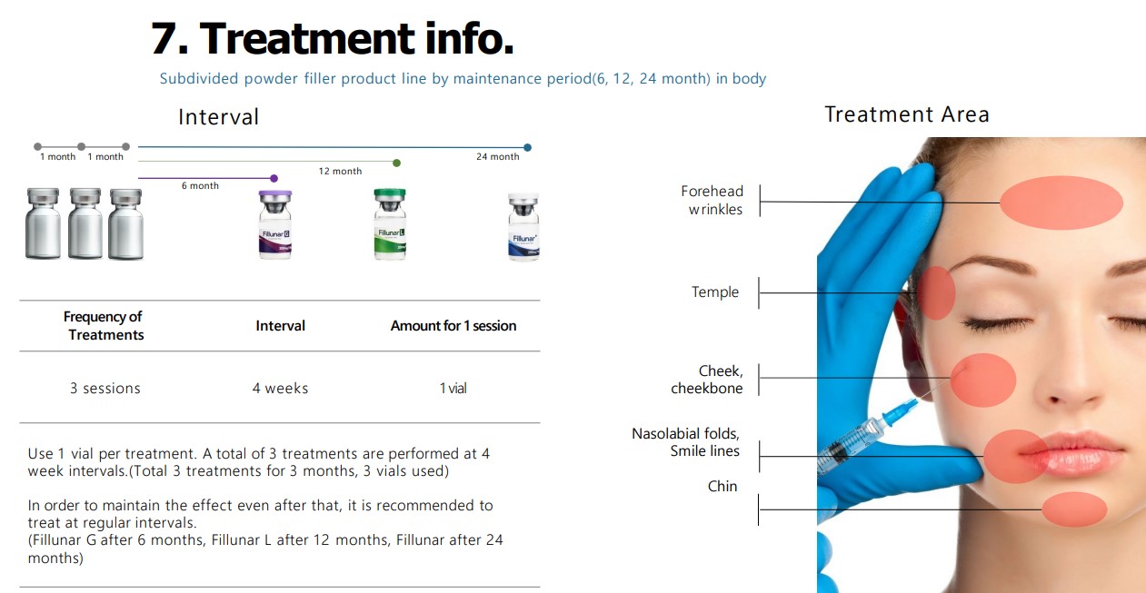 - Use 1 vial per treatment. A total of 3 treatments are performed at 4 week intervals.(Total 3 treatments for 3 months, 3 vials used)