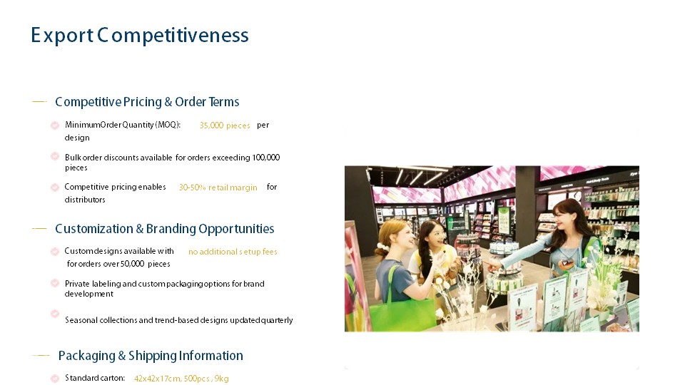 - MOQ : 35,000 set but negotiable