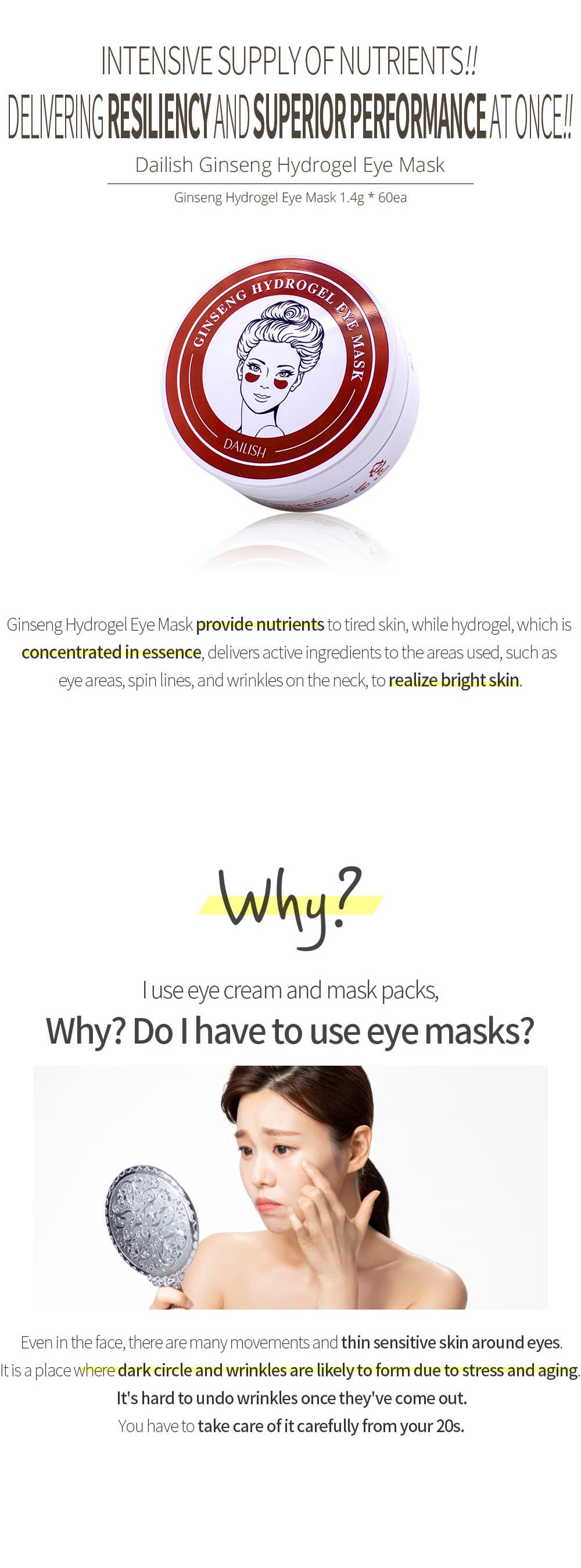 Allantoin and a ginseng extract moisturizing ingredients penetrate the skin, make a shield on skin to keep the delicate skin around the eyes moist.
