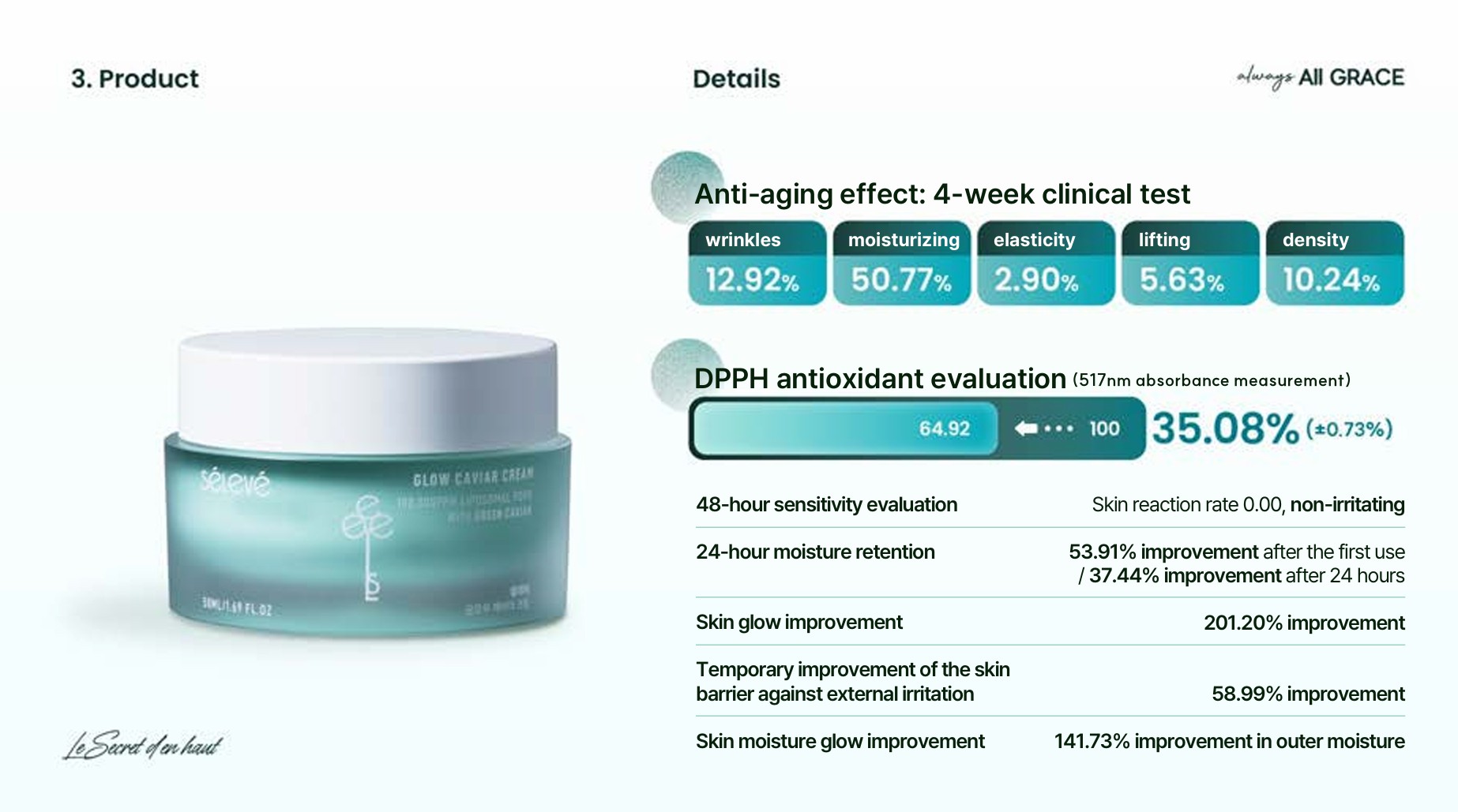 Green Caviar PDRN, formulated with liposome technology, deeply hydrates the skin and enhances elasticity. Glacial water and marine extract ingredients protect the skin barrier, leaving the skin smooth and healthy, while boosting immediate radiance. Ceramide and squalane form a moisturizing barrier that keeps the skin hydrated for a long time.