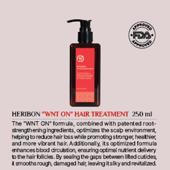 Struggling with hair loss and dull, lifeless strands? HERIBON "WNT ON" HAIR TREATMENT is your ultimate solution! Powered by patented and scientifically proven ingredients (WNT ON Formula), this breakthrough formula revitalizes your scalp, reduces hair loss, and fuels stronger, healthier growth from the very first use.