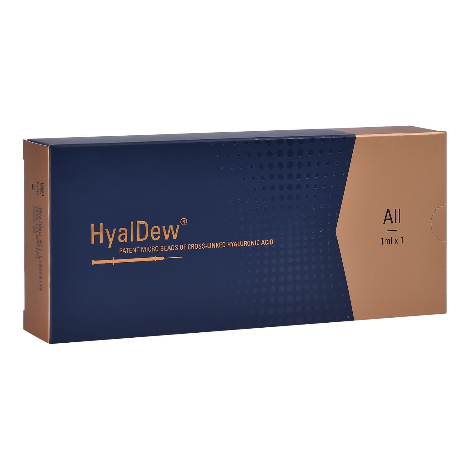 HyalDew All is the hardest from among its product line. It’s smaller particle size allows easy molding that can be used in any part of face to enhance volume and improve contour lines on the forehead, glabella, temple, nose, cheeks, fold, Lips, chin, and improve deep wrinkles such as in the nasolabial folds