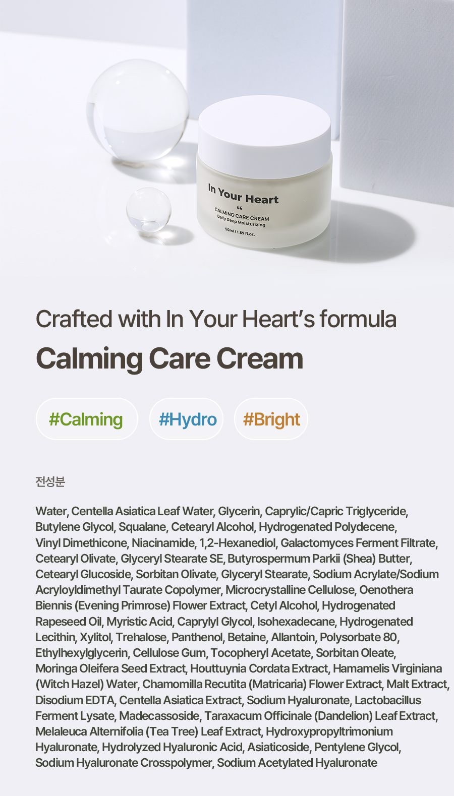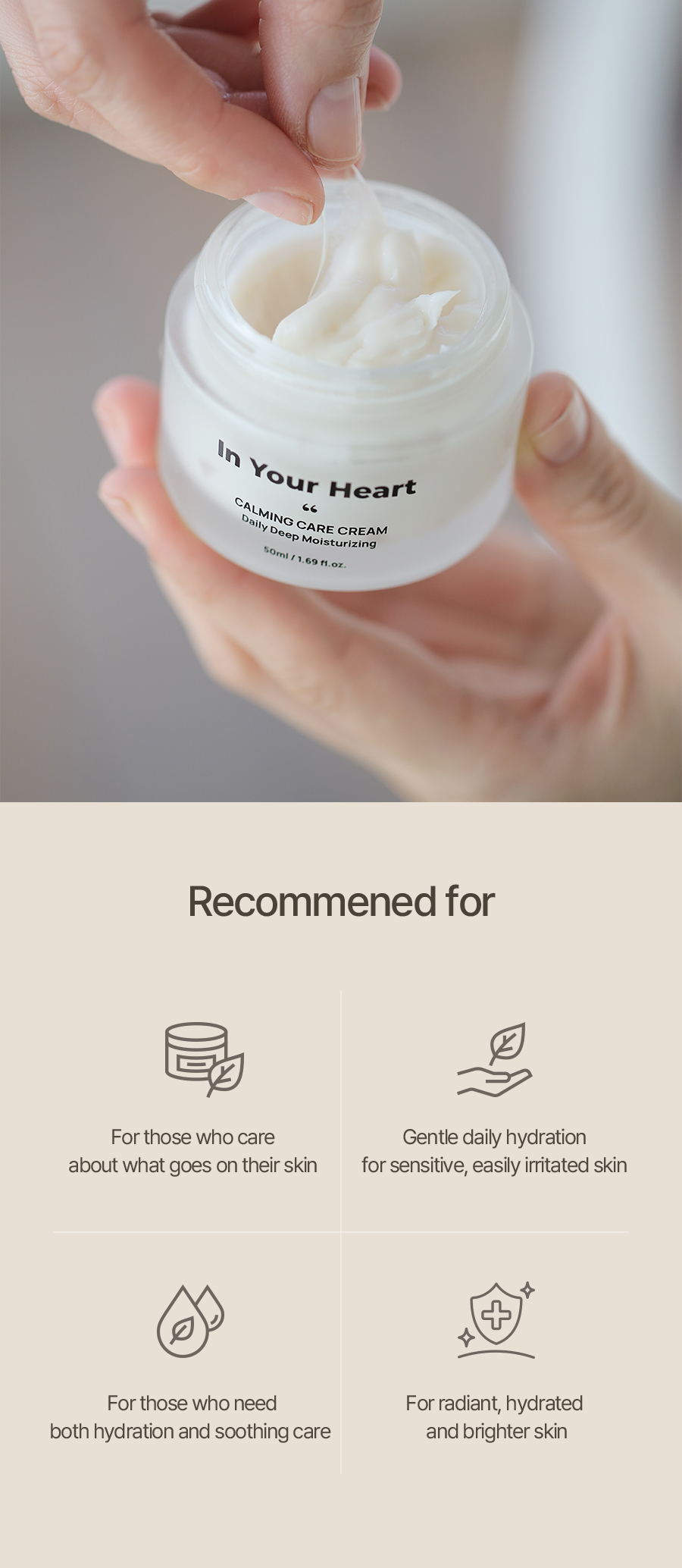 Our Calming Care Cream is a premium moisturizing cream specially formulated for sensitive, dry, and irritated skin. With 59% active ingredients and plant-based natural extracts, it delivers intensive hydration while soothing and protecting the skin barrier. The light, non-sticky texture absorbs quickly, providing deep moisture without heaviness.