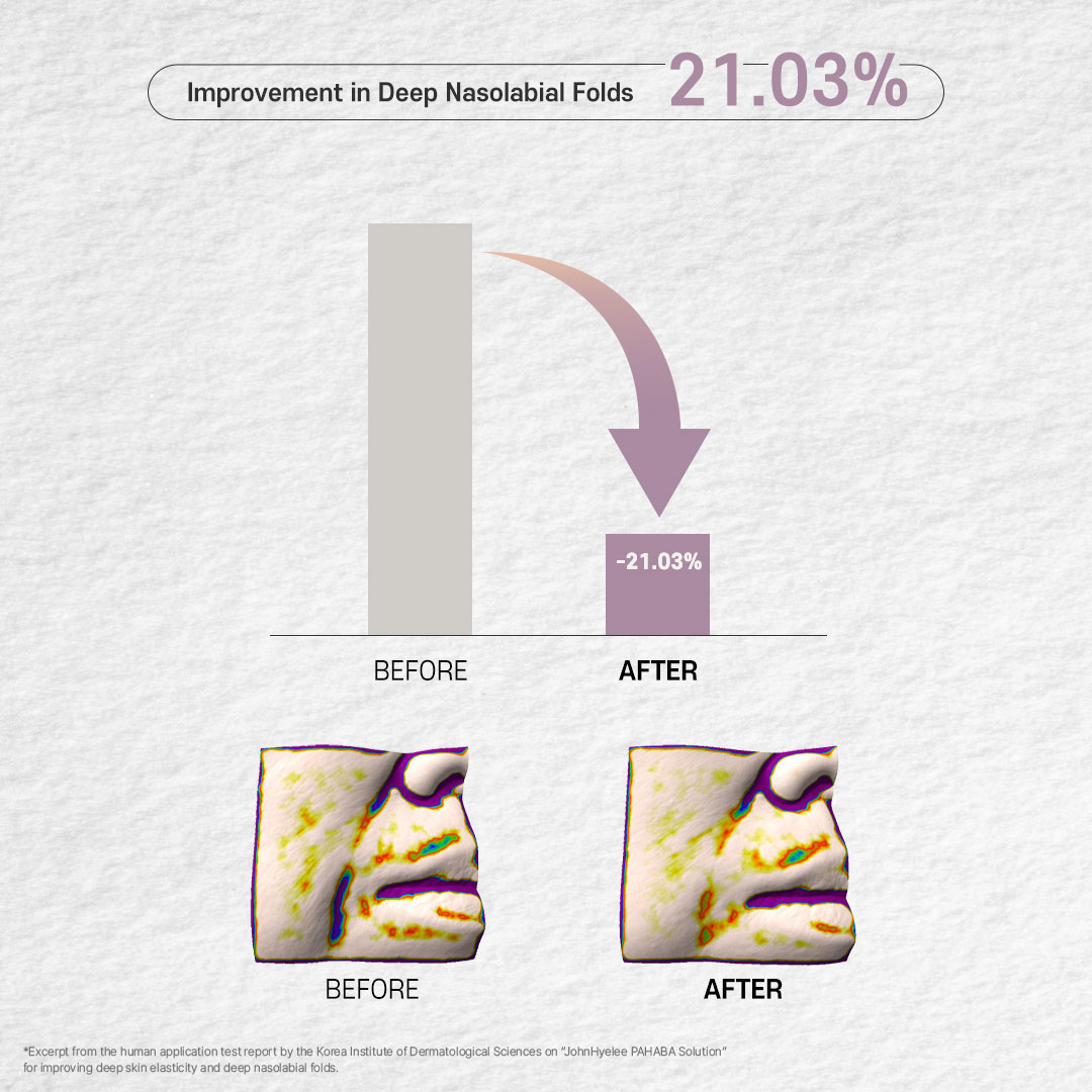 • 㐳JohnHyelee PAHABA Solution㐴 requested for testing by JH Science Co.,Ltd, is confirmed to improve deep skin elasticity and deep wrinkle line around nose.
