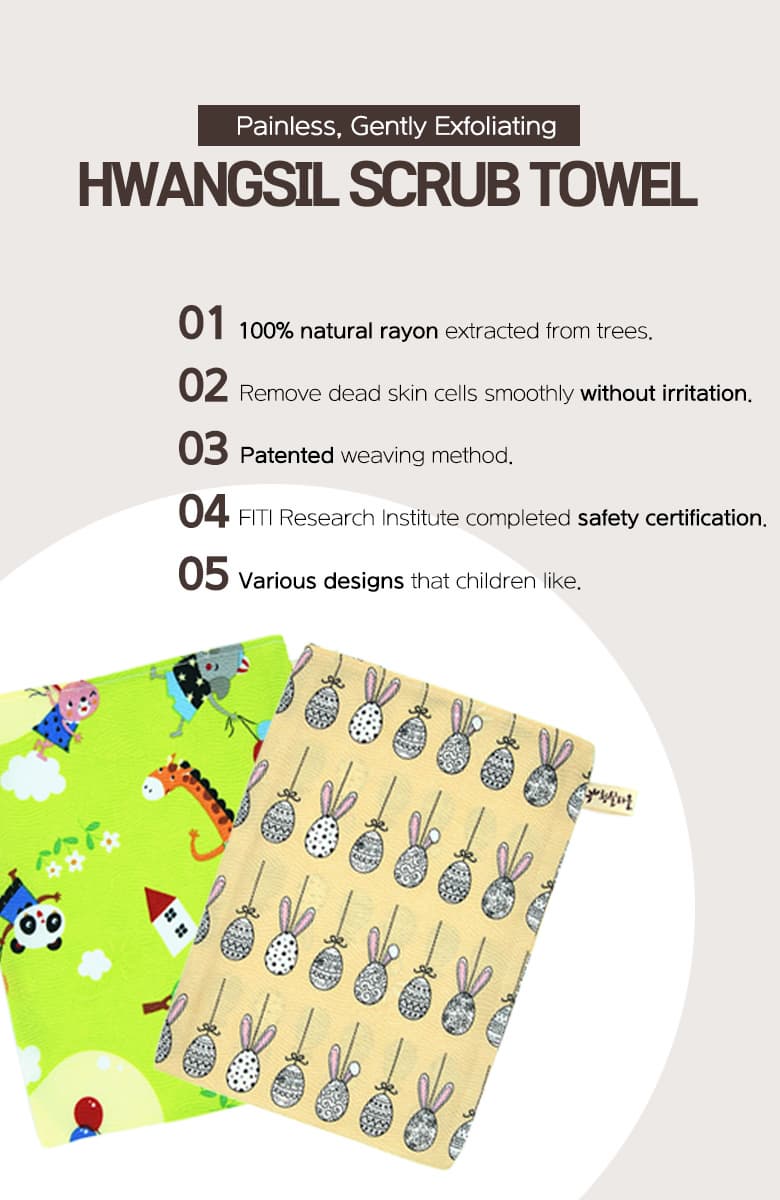 Silky, soft and less irritating Hwangsil scrub towel is really good for those who have not been able to exfoliate due to their weak skin including infants, children and women.