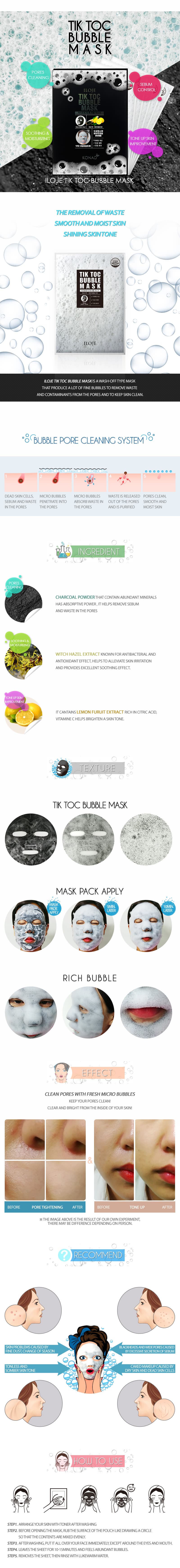 ILOJE TIK TOC Bubble Mask is a wash-off type mask that produce a lot of fine bubbles to remove waste and contaminants from the pores and to keep skin clean.