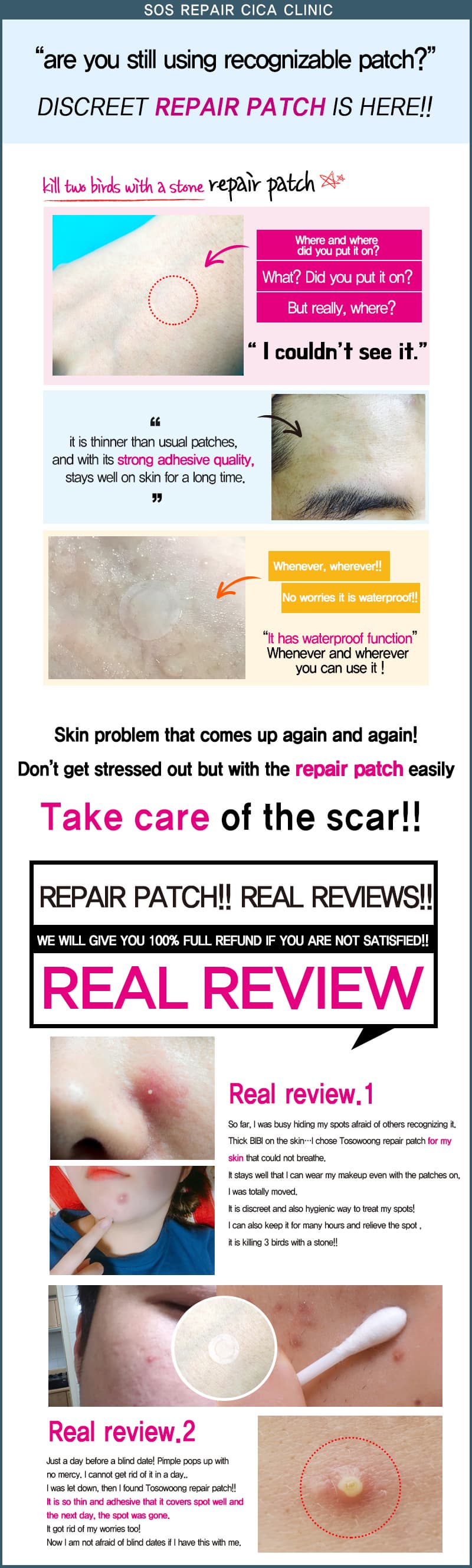 Product Info : It is a sanitary-aid that fast cares acne scar and gives protection with water resistant surface that prevent formation of scab.
