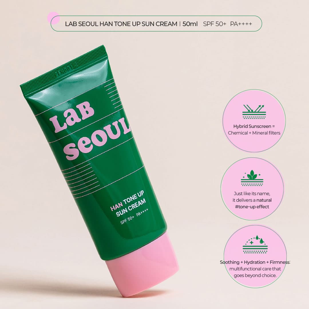 • LAB SEOUL Han Tone up sun cream combines both chemical and physical filters to block a broader spectrum of UV rays.