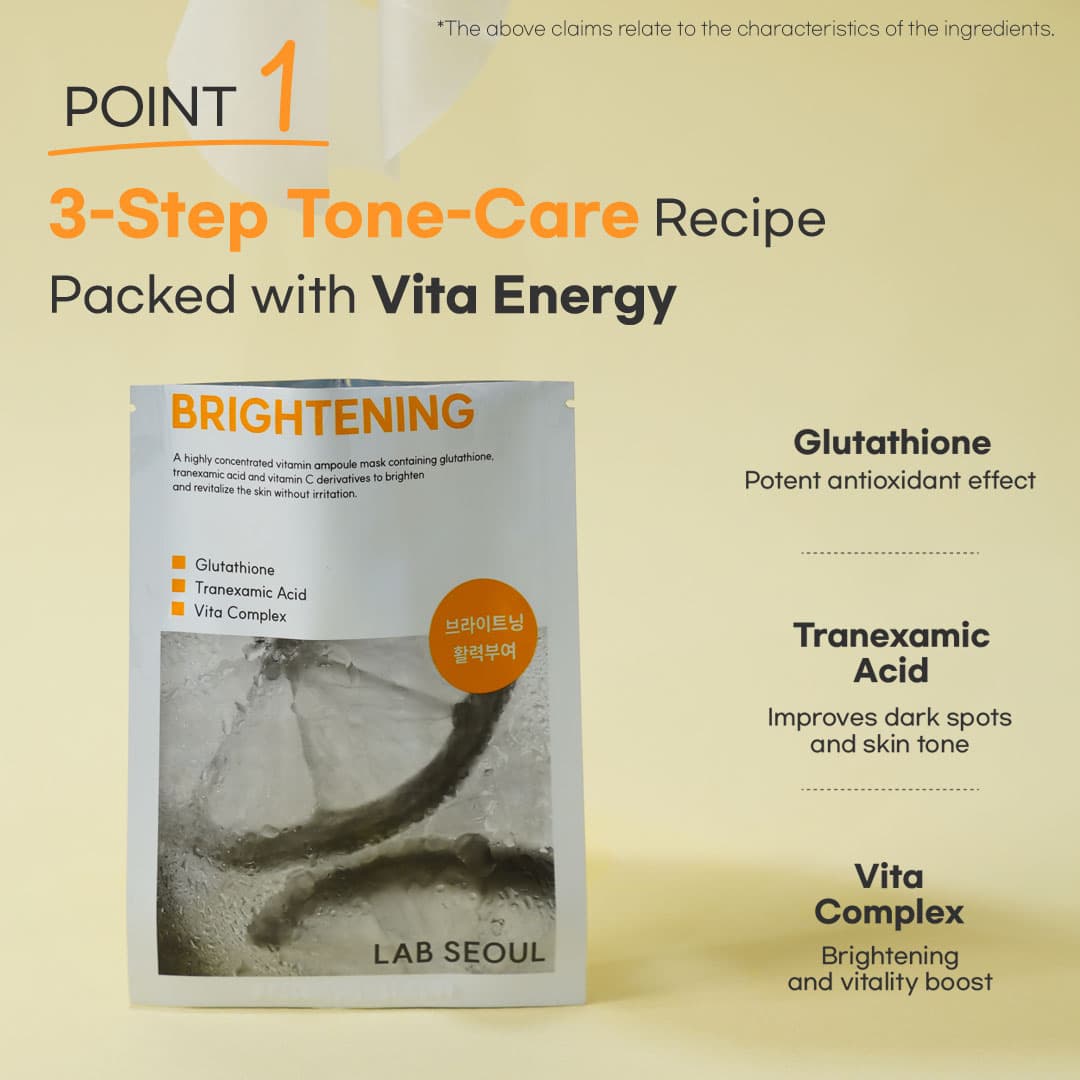 A Highly concentrated vitamin ampoule mask containing glutathione, tranexamic acid and vitamin C derivatives to brighten and revitalize the skin without irritation.