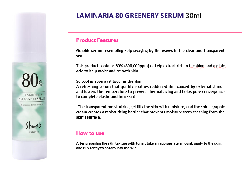 This product contains 80% (800,000ppm) of kelp extract rich in fucoidan and alginic acid to help moist and smooth skin. So cool as soon as it touches the skin!