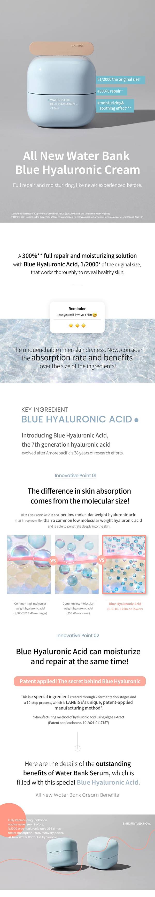 Blue HA — Blue Hyaluronic Acid — is our new, next-gen hydration ingredient proprietary to Laneige!