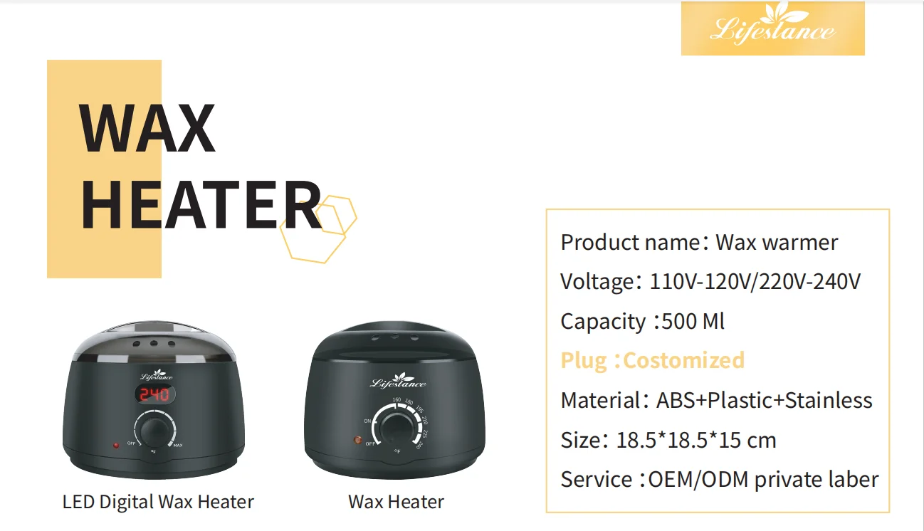 | Packing | One wax warmer with LED DIGITAL, 4 bags of wax beads(3.5 oz. each),10 large and 10 medium and 10 brow applicators, one pack pre&after wax spray, 5 collars/rings |