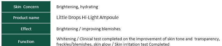 With the highlight toning synergy of daisy flower extract and blossom essence , provides a hydrating toning effect that fills the skin from the inside out.