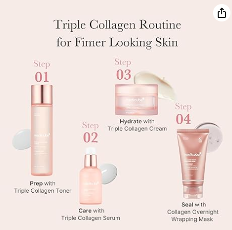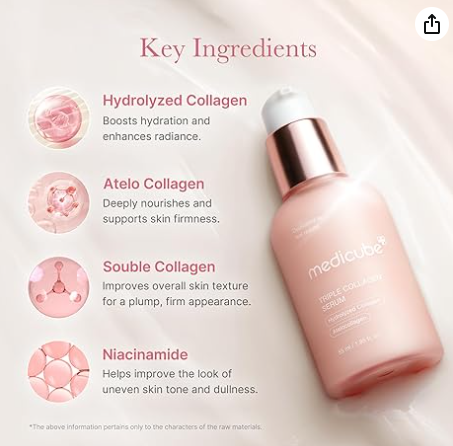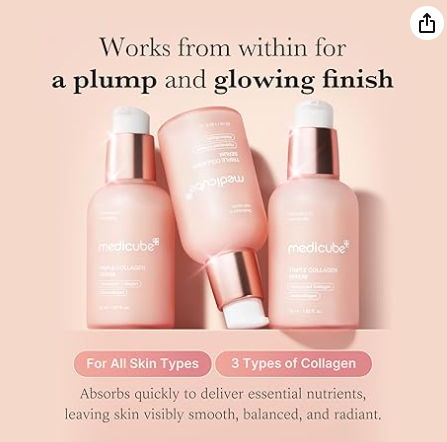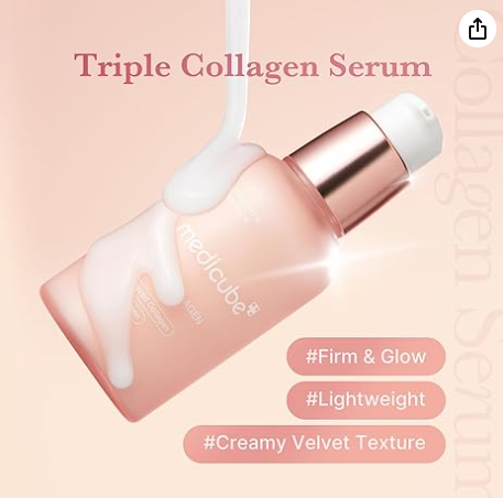 Medicube Triple Collagen Serum is a powerful serum that helps to boost skin elasticity and nourish dull skin with the envious glass glow. The Triple Collagen Complex with Hydrolyzed collagen, atelo collagen, and soluble collagen penetrate faster and deeper into the skin barrier, providing even the deepest skin layer with the essential nutrients for plump and healthy-looking skin.