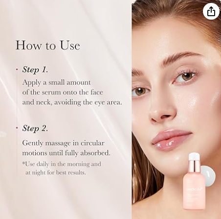 Apply a small amount of the serum onto the face and neck, avoiding the eye area. Gently massage in circular motions until fully absorbed. Use daily in the morning and at night for best results.