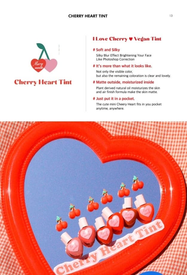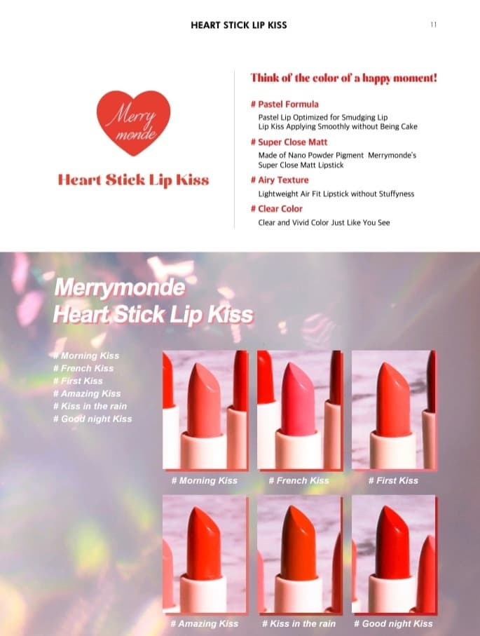 With the unique heart-shaped design, our signature, and the stick type with superb product quality, the word of mouth is promoting Merry monde among domestic and foreign Z- generation beauty influencers, thereby leading the beauty trend. We have excluded animal experiments and using animal ingredients and present vegan-oriented color cosmetics using EWG green-grade natural ingredients.