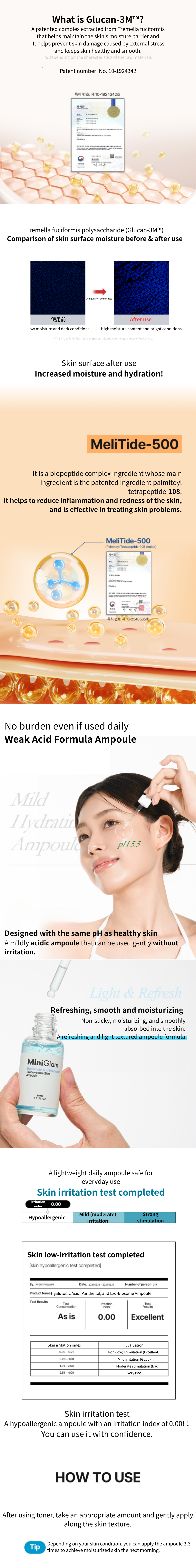 After applying lotion, apply an appropriate amount along the skin texture and tap lightly until absorbed. Apply 2-3 times depending on your skin condition to achieve a more moisturized skin.