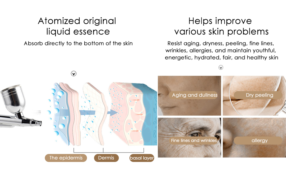 We recommend to use skincares such as Smoothing Toner, Firming Lotion, Whitening/Moisturizing Essence and so on. The airbrush set used in the spray gun must be a water-based product, high-concentration products must be diluted with water first. |