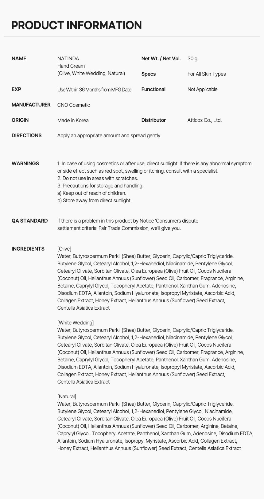 Pharmacist’s choice A break time for my handsHypoallergenic & highly moisturizing hand care -Moisturizing -Wrinkle improvement -Skin soothing -Cuticle care Are your hands that are always tired of being dry moist? #High moisturizing #Moisturizing barrier #Hypoallergenic #Family hand cream 01.Moist feelingEnriched with nutritious sheabutter Keep your hands moist for a long time 02.Mild weak acidityThinking of skin balanceHypoallergenic hand cream 03.Refreshing formulaSoftly absorbed, non-sticky clean finish 04.All in One CareCare for dead cell in your handswith one hand cream Managefor cuticles at once 05.Wrinkle improvementfunctionKeep easily dry & wrinkle hands healthy with adenosine ingredient Hand cream - 3types [Olive] Olive hand creamOlive scent filled with the freshness of nature Rich in olivesWith nutrients and moisturizing ingredientsHealthy hand cream [WhiteWedding]White wedding hand cream A delicate, fragrant white wedding scent that wraps around your fingertips. With a delicate floral scentIn a lovely moodFill your day in a good mood. [Natural]Natural unscented hand creamSimply filled with essential ingredients excluding fragranceThose who are burdened with scented hand cream due to work -Cook/HousewifeThose who do not like to mixother flavors with food -Doctor/NurseFrequent hand washing forhygiene reasonsThose who need to manage with hand sanitizer -Nail & Esthetic managerThose who need to be neat and clean hands because a lot of hand using job -Those who are sensitive to fragranceThose who want hand creamSensitive to scents, clean and unscented -Those with dry handsThose who feel dry by frequent hand washing Unnecessary things boldly take it offand filled with onlythe necessary ingredients in my hand Restless hands all day longperfect moisturizing care Sensitive skin most exposed to life stimuliGive your hands the gift of relaxation with rich nutrition and moisture Customized care for my handsGood Ingredient Subacidic Hand Cream Supply the oil and moisture balance of the skin without drynessKeeps you in a moist and comfortable condition all the day The reason why hand cream with weakly subacidity ingredients similar to skin is important! When the pH index is slightly acidic, you can keep your skin moist without irritation. Filled with shea butterNourishing moisturizing formula Butter melting formula melts gently at skin temperatureIt penetrates creamily and leaves a refreshing finish without stickiness. With this hand cream onlyEasy all-in-one care It give not only moisturizes to day hands but also cleans/removes cuticles to messy hands. Considering wrinkles alsoSmart hand cream Dryness is the cause of wrinkles! It helps to improve wrinkles by balancing oil and moisture for collapsed skin by frequent water use and external stimuli Made with good raw materialsCertified facility you can trust Recommended for Those whose hands are always dry due to frequent water useThose who want to protect dry hands during the changing seasonsThose who want to soften rough handsThose looking for a hand cream that can be used by all familyThose who are sensitive to fragrance and are looking for an unscented hand cream