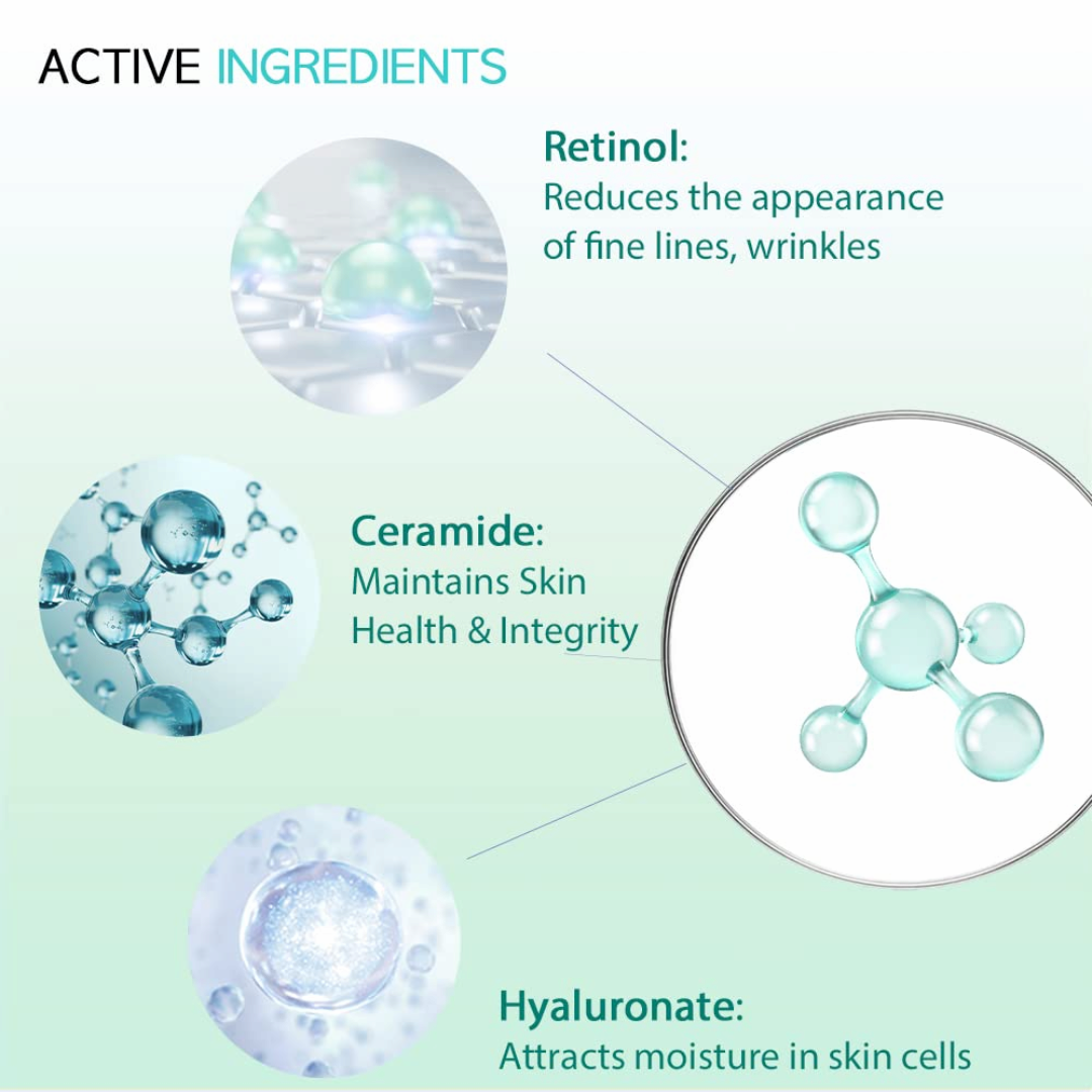 Retinol, Ceramide and Hyaluronate Targets on frustrating wrinkles and plumps skin around the eyes