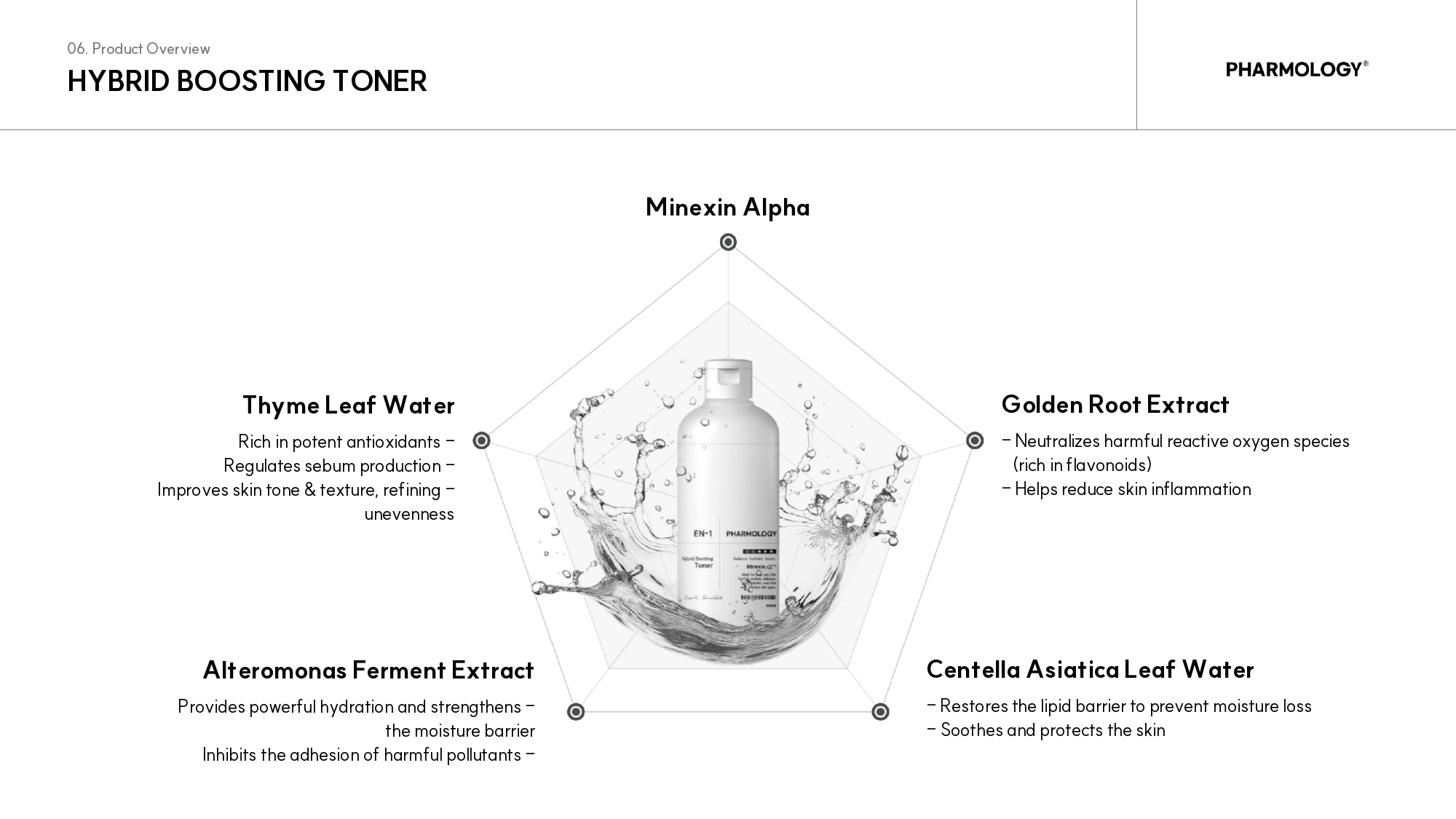 Pharmology’s Hybrid Boosting Toner is designed as a first-step treatment that combines the refreshing lightness of a toner with the intensive nourishment of a serum. Enriched with Minexin-α® and antioxidant-rich botanicals, it hydrates, calms, and strengthens the skin barrier while boosting the absorption of subsequent skincare.
