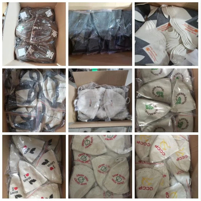 Q:Are you a manufacturer or trading company? A:We are a factory concentrate on felt manufacture more than 30 years,and we have our own trading company focusing on the trading business. Q:Does the factory have a audit? A:BSCI and Target. Q. What about the lead time?A:Samples and small quantities of goods only take 3 days, Large quantities of products about take 7 days, based on quantity and customized product. Q:Can it be shipped to Amazon warehouse? A:Yes.We have a lot of experience on Amazon. Q:Why do people wear wool hats at bathroom?A:The felt is an important accessory when steaming.A:The air in the sauna room may be up to 90 degrees, but a wool felt hat will keep the air around your head at a comfortable temperature.Q:Can you do my own style and embroidery?Yes ,we are manufacturer ,we could open mold for new style and add your embroidery.Q:How to put the hat after sauna?A: When you after sauna, you can hang your hat up in ventilated dry place.Q: Is a sauna hat worn wet or dry?A: Dry, it will be more better to keeping the temperature.Q:Can I get a sample before order ?A:Yes ,small quantity samples is free ,freight collect.