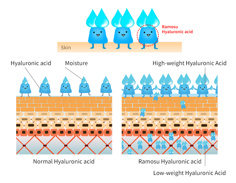 Super moisturized Ampoule!Ramosu Hyaluronic acid ampoule.With a extraordinary ability to attract and retain moisture,Ramosus hyaluronic acid provides an immediate cure for dehydrated,damaged skin and keeps moisture inside the skin with just one drop.Intense Moisturizing SolutionPotent Moisture Replenishing Ability |