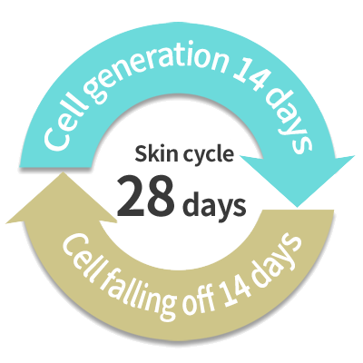 | The skin cycle is continually sloughing off old dead skin cellsand replacing them with new ones.Our skin produces new skin cells for 14 days,Our skin travels from the lowest layer to the top layer,where they shed off for 14 days. | |