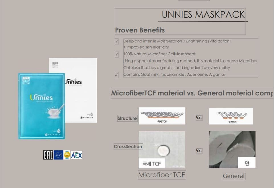 100% Natural Microfiber Cellulose for great fitting and Goat Milk for deep moisturization.