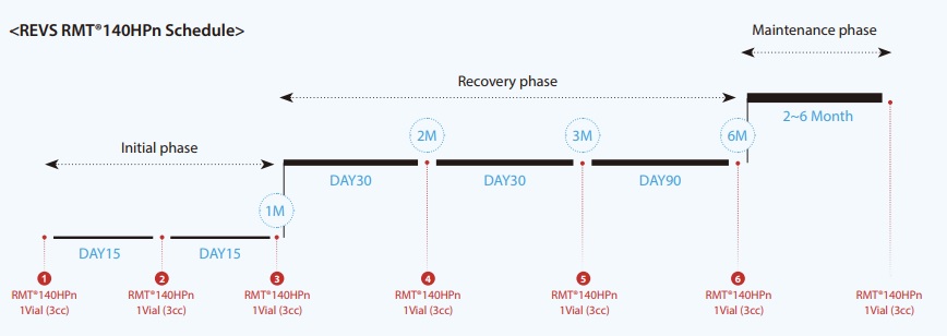 Effects of RMT®140HPnThe REVS RMT®140HPn is used four times in the initial 15-day interval and two times in a one-month interval in the recovery phase.