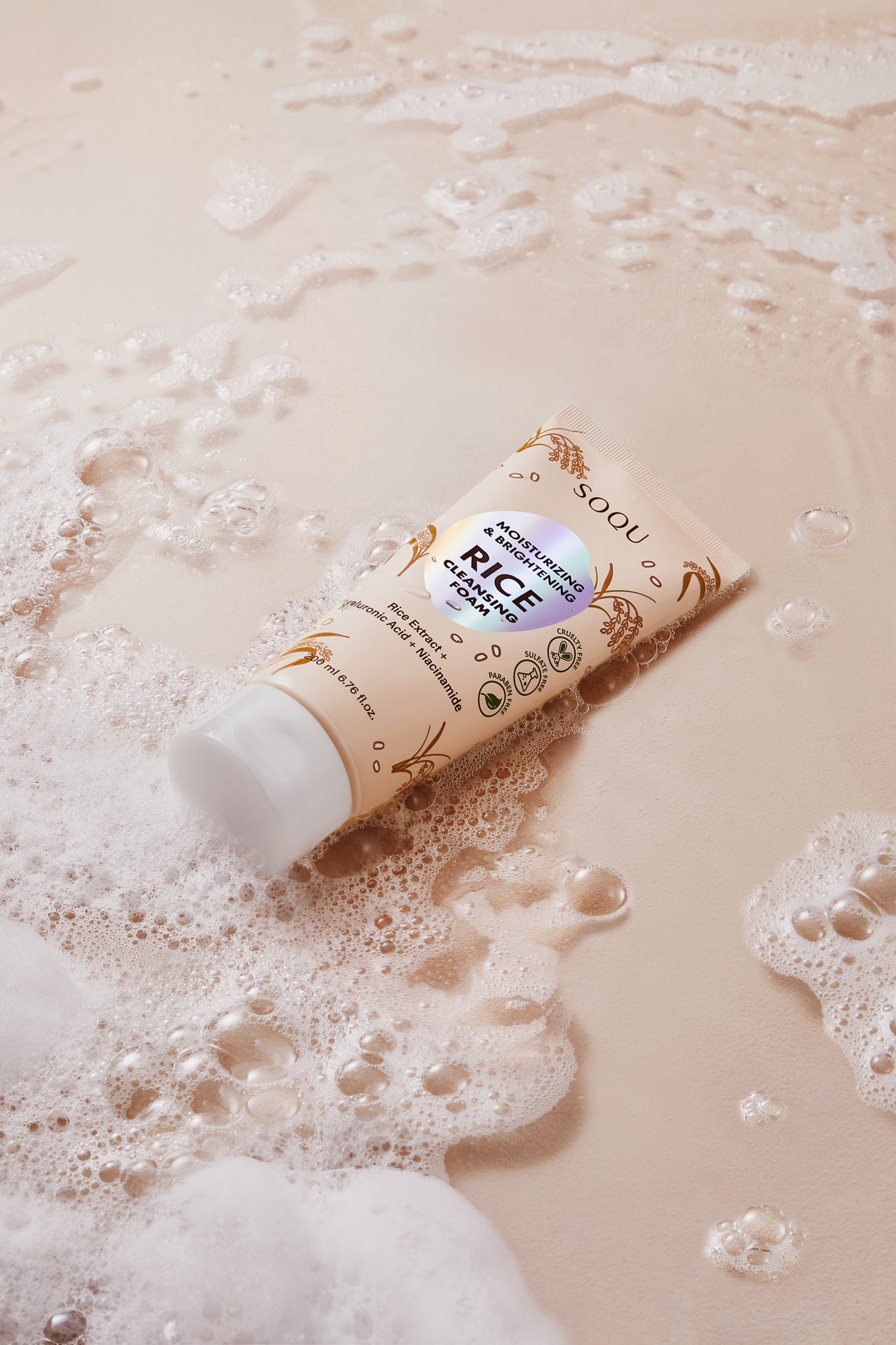 This creamy and gentle foam cleanser infused with Rice Extract, Hyaluronic Acid and Niacin- amide removes makeup and serves as an excellent daily cleansing solution