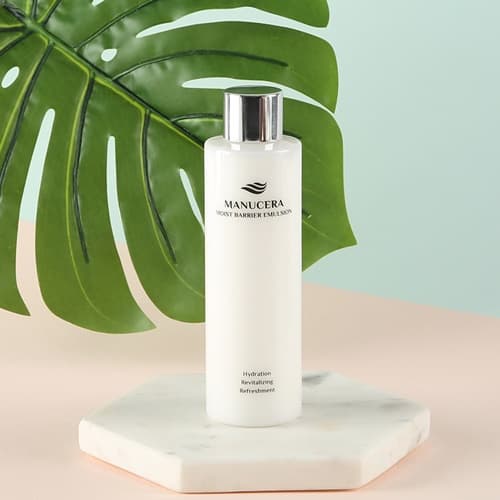 How to UseAfter applying the Manucera Moist Barrier Toner, smooth over the face and neck morning and night.