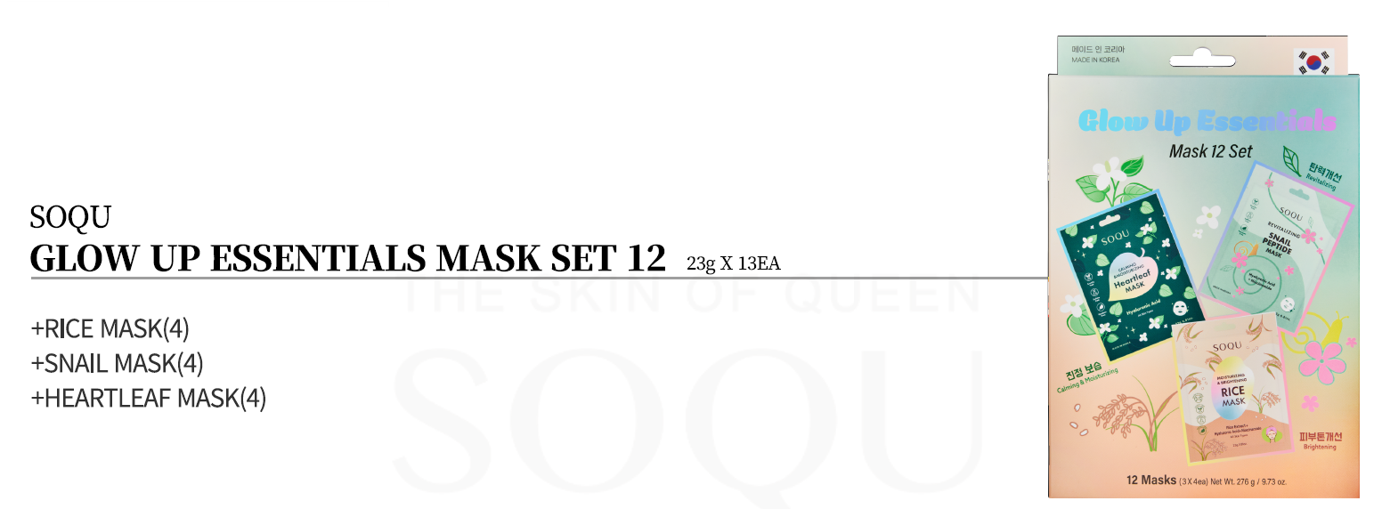 This set includes 12 premium sheet masks, each infused with unique ingredients that target hydration, brightening, firming, and soothing effects.