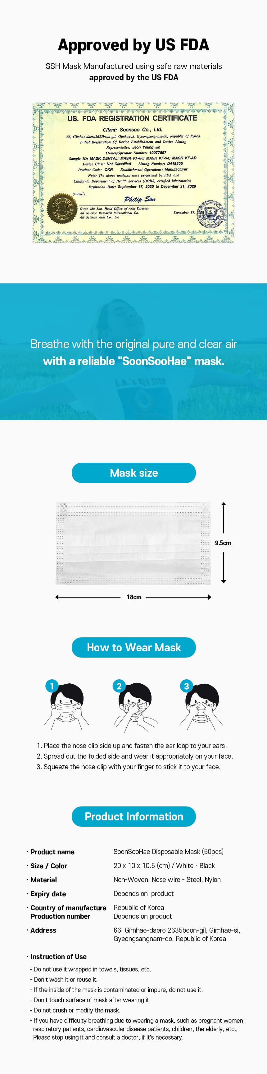 The Soonsoo mask is manufactured in a factory complete with clean facilities and is manufactured in Korea 100% from manufacturing to distribution.