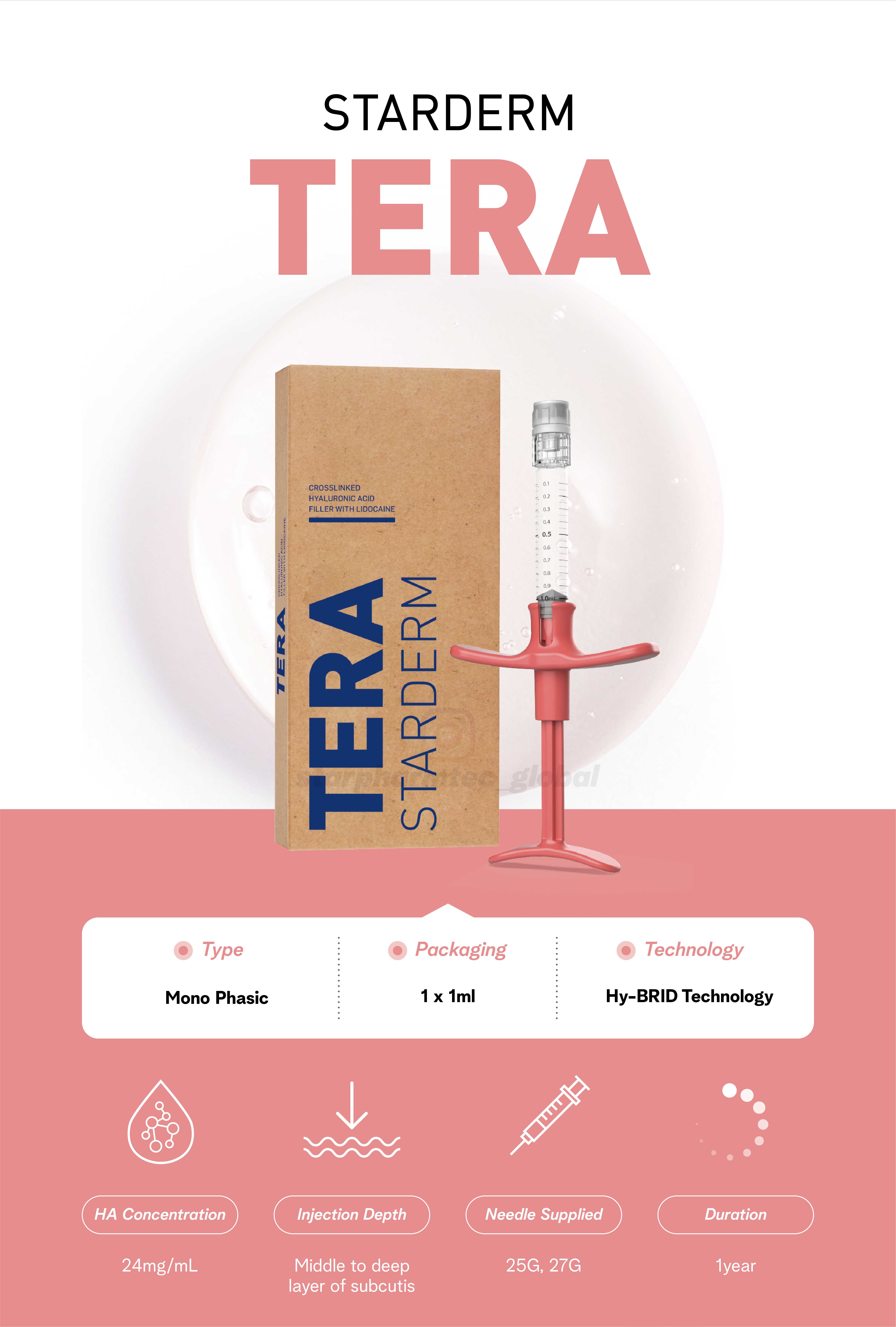 STARDERM TERA is designed for injection into the middle to deep subcutaneous layer, offering enhanced volumizing effects and contour definition.