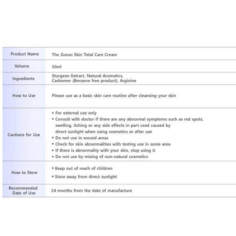 A total all-purpose cream that contains 98.3% Sturgeon extract and provides nutrients and moisture to the skin to make it healthy.