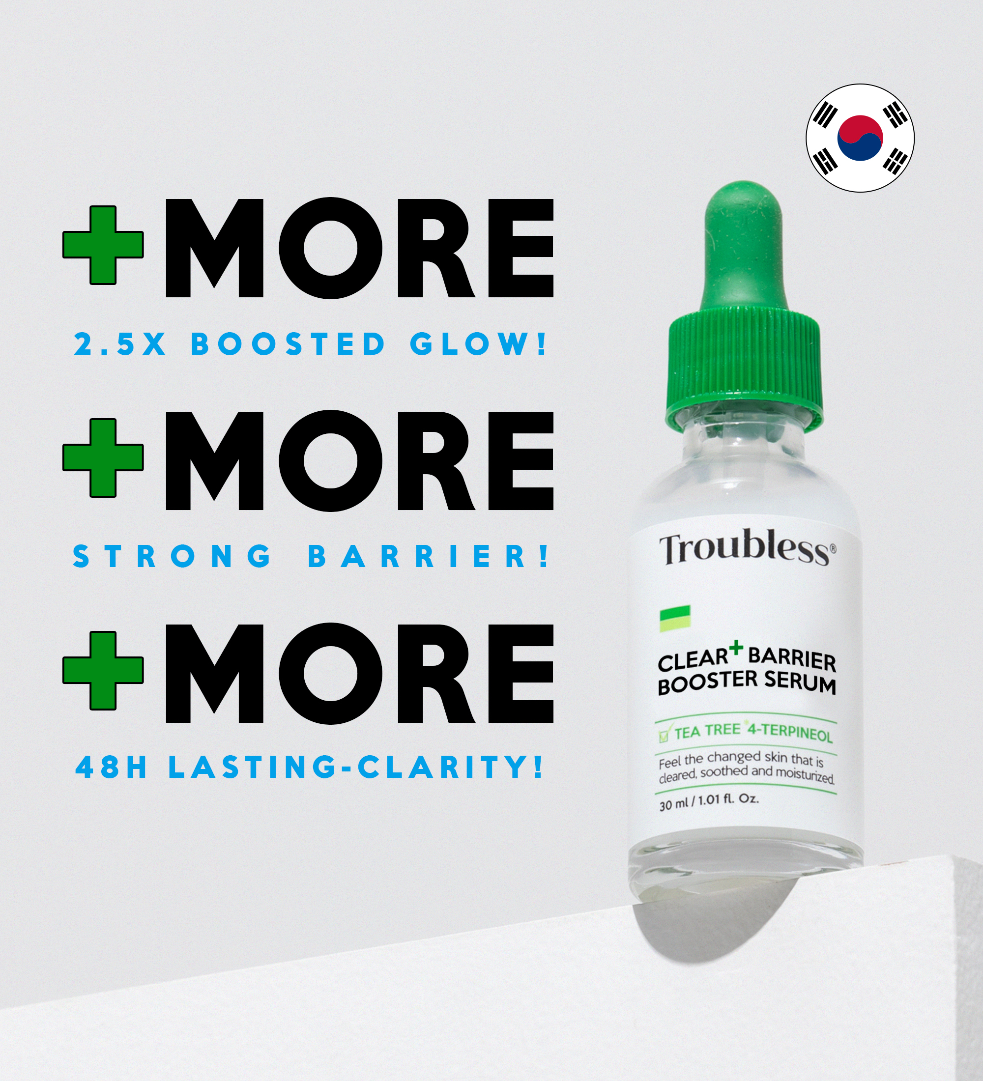 Troubless Clear Plus Barrier Booster Serum is a lightweight, fast-absorbing serum designed to hydrate, soothe, and strengthen the skin barrier — especially for sensitive and irritated skin. Powered by a gentle formula of ceramide, hyaluronic acid, niacinamide, and vitamin E, it helps retain moisture, calm redness, and promote overall skin balance.