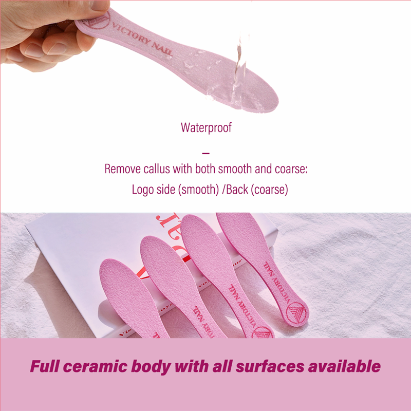 You start off with the rough side to take care of the dead skins, and then use the smooth side with a logo to finish. Make your heel smooth.