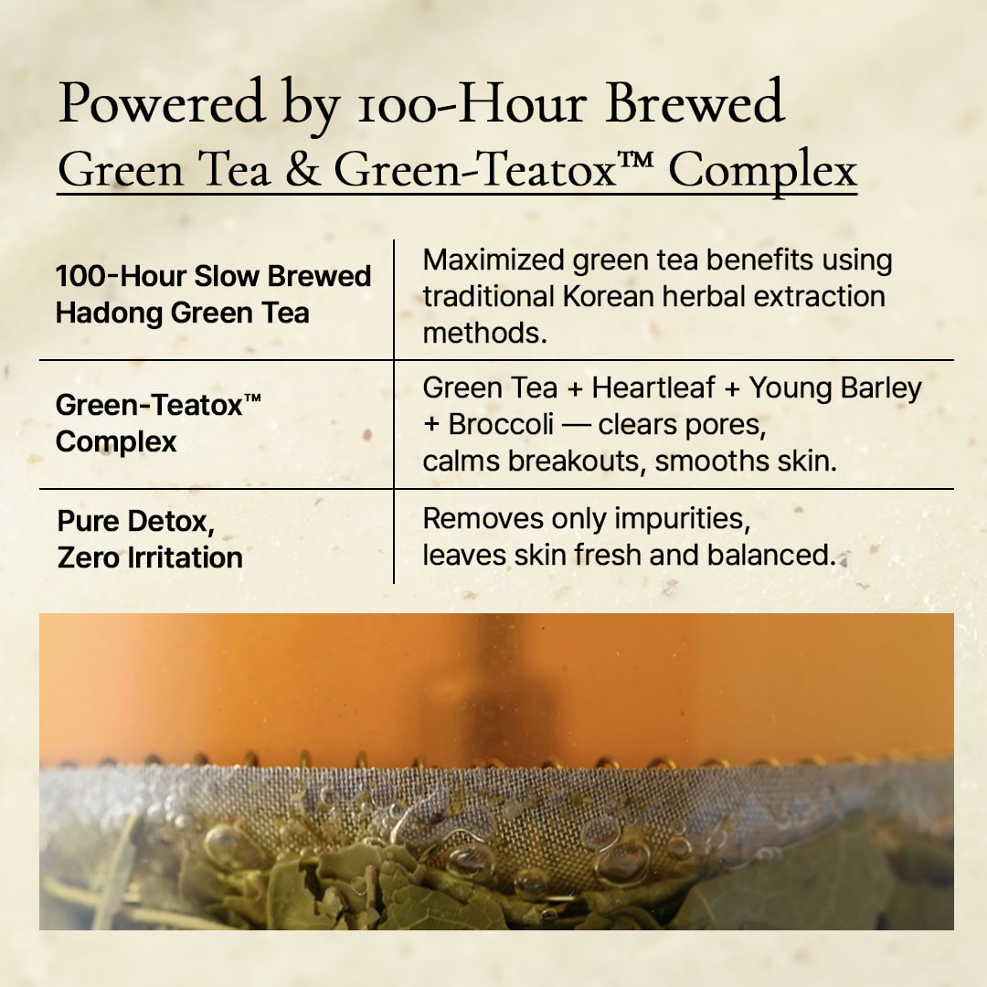 Proprietary Green Tea-Tox complex that deeply cleanses pores